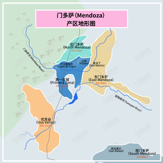 在阿根廷的中西部,美麗的安第斯山脈(Andes Mountain Range)山腳下,坐落著阿根廷最重要的葡萄酒產(chǎn)區(qū)之一——門多薩(Mendoza)。該產(chǎn)區(qū)大致可分為五個(gè)子區(qū)域——第一區(qū)域(Primera Zona)、東門多薩(East Mendoza)、北門多薩(North Mendoza)、優(yōu)克谷(Uco Valley)和南門多薩(South Mendoza)。產(chǎn)區(qū)內(nèi)的葡萄園面積占阿根廷葡萄園總面積的75%,酒莊數(shù)量也穩(wěn)居阿根廷國(guó)內(nèi)第一。