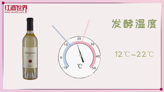 白葡萄酒的理想發(fā)酵溫度為12°C至22°C之間,因為較低的溫度可以減緩葡萄酒的發(fā)酵進程,有利于保留葡萄品種的風味特性,盡可能避免芳香物質的流失。在較高的溫度下發(fā)酵可以使葡萄酒產生一些更復雜的芳香,但有可能會失去果味;在過低的溫度下發(fā)酵會給葡萄酒帶來水果硬糖的味道,也不利于展現(xiàn)葡萄品種的果味。