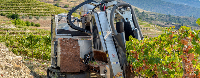 在一些地勢(shì)平坦、便于機(jī)械作業(yè)的產(chǎn)區(qū),有些酒莊選擇用機(jī)器采收,依靠機(jī)器搖晃葡萄樹的主干將葡萄抖落下來(lái)。這種方式?jīng)]辦法對(duì)葡萄的優(yōu)劣進(jìn)行選擇,但勝在速度快,且對(duì)人力要求較低。