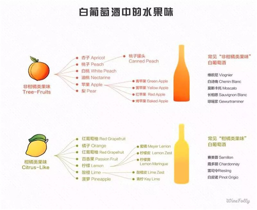 ②白葡萄酒中的果味也有兩類(lèi),柑橘類(lèi)和非柑橘類(lèi),了解了這一點(diǎn),也能為我們的配餐提供指南。