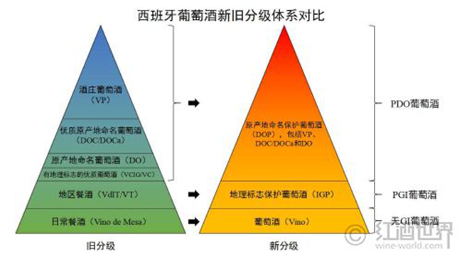 同樣,西班牙的分級體系也做出了相應的調整:日常餐酒變成了葡萄酒(Vino),屬于無GI葡萄酒,不受PDO和PGI的約束和保護;地區餐酒調整為地理標志保護葡萄酒(Indicacion Geografica Protegida,簡稱IGP),屬于PGI類別,但很多酒莊還是習慣使用VT或VdlT;VCIG及其以上的級別則統稱為原產地命名保護葡萄酒(Denominacion de Origen Protegida,簡稱DOP),屬于PDO類別,但“DO”“DOCa”和“VP”等級別仍然保留,VCIG的級別則不再使用。