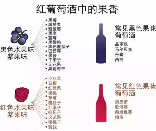黑色水果的香氣常見(jiàn)于赤霞珠和西拉等葡萄酒,香甜中多了一分深邃,在最成熟的葡萄酒中會(huì)發(fā)展為果醬的香氣。