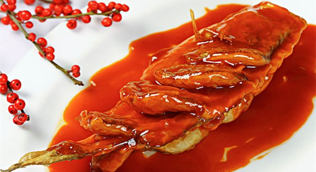 如西湖醋魚,一定要選用酸度相當或比菜酸度高一些的酒。黑皮諾將是一個絕妙的選擇,它屬于中等酒體,且酸度較高。