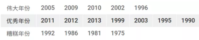 博訥丘產(chǎn)區(qū)(Côte de Beaune)年份排行