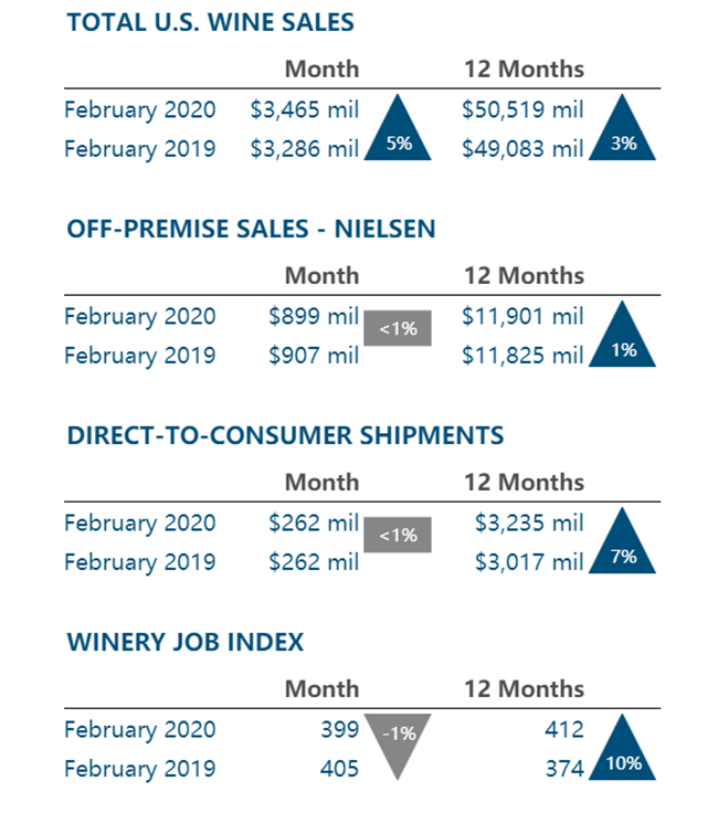市場研究公司bw166報(bào)告稱,在過去的12個(gè)月中(截至2月底),美國葡萄酒的總銷售額增長了3%,達(dá)到505億美元,2月當(dāng)月的總銷售額增長了35億美元。在截至2月22日的四個(gè)星期中,銷售額下降了1%,至8.65億美元。