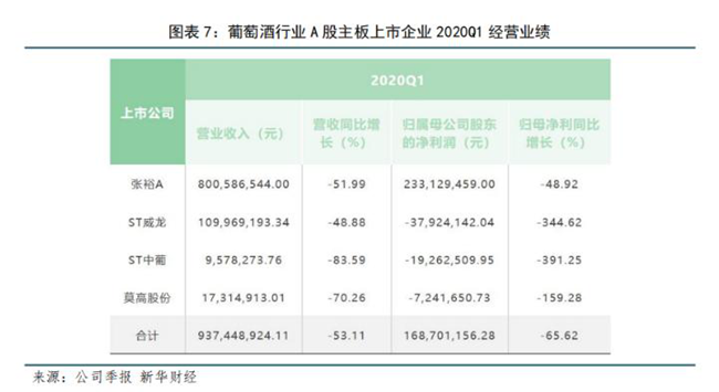 新冠肺炎疫情對于本就脆弱的葡萄酒行業(yè)來講,無疑是一記重錘。2020年第一季度,四家葡萄酒企業(yè)總營收9.37億元,同比降低53.11%;實(shí)現(xiàn)歸母凈利1.69億元,同比降低65.62%。只有張?jiān)R患覛w母凈利維持正值,其余皆為虧損。業(yè)內(nèi)人士曾表示“葡萄酒行業(yè)'短期不樂觀',2020年將是國內(nèi)葡萄酒市場近十年來最艱難的一年。”