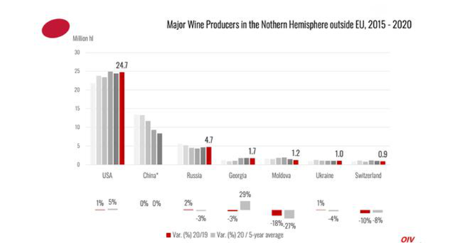 北半球2020年的采收并未受到因疫情封鎖措施的強烈影響。2020年,歐盟國家葡萄酒產量為159億升(mhl),占全球總產量的62%。