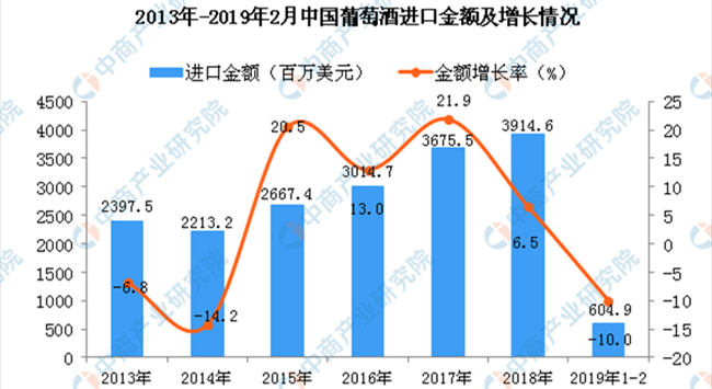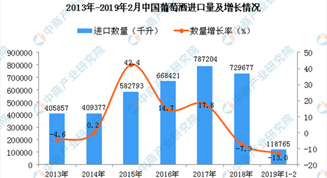 • 2019年1-2月中國葡萄酒進口量同比下降13%