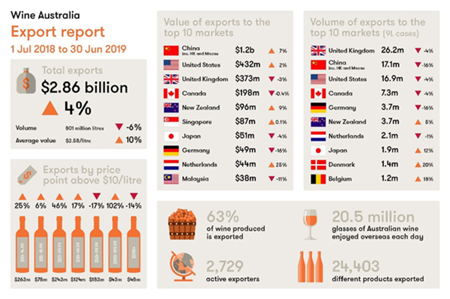 截至2019年6月底的12個月中,澳大利亞葡萄酒的出口總額增長了4%至28.6億澳元。其中,對中國市場的出口額持續(xù)增長7%,創(chuàng)下12億澳幣新高。