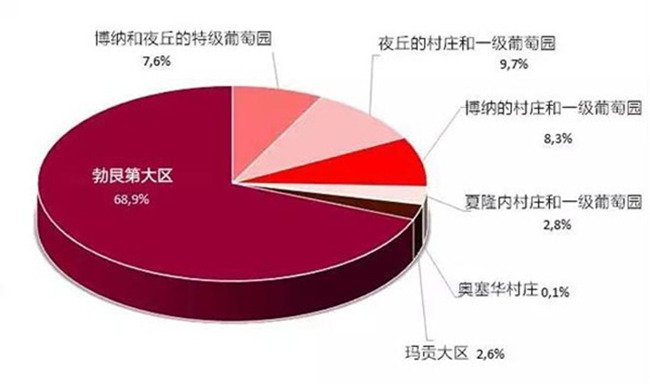 勃艮第紅葡萄酒在中國市場(chǎng)一直占據(jù)著比較重要的位置,2018年中國進(jìn)口的勃艮第葡萄酒中,紅葡萄酒占71.7%,而實(shí)際上勃艮第其實(shí)主要以生產(chǎn)白葡萄酒為主(61%的白葡萄酒,29%的紅葡萄酒)。