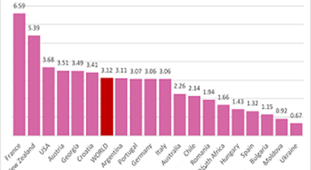 世界葡萄酒出口價格數據:法國第一,格魯吉亞第五